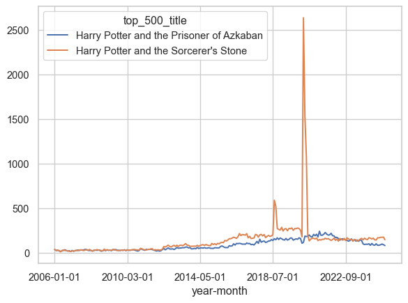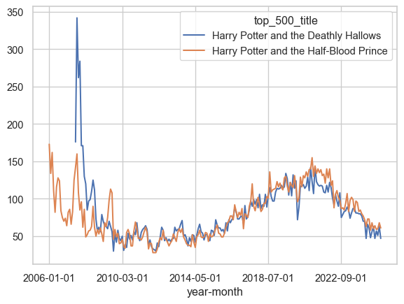 wide_df[["Harry Potter and the Deathly Hallows", "Harry Potter and the Half-Blood Prince"]].plot()