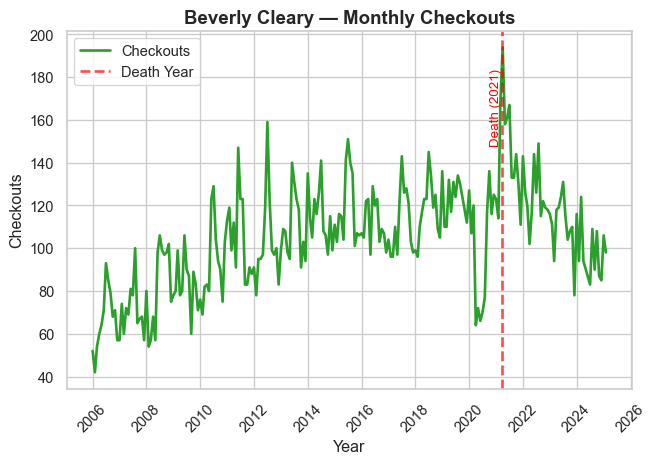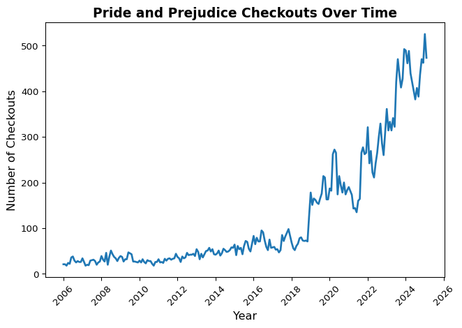 More broadly, do library checkouts correlate with book purchasing behavior form the same region? Do checkouts from the Seattle system indicate national interest from library patrons or just regional interest? These are difficult questions to answer, and we talk more about how we can use library checkouts as proxies for constructs of interest in prior work (Gupta, Christensen, et al. 2025).