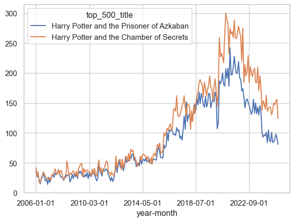 wide_df[["Harry Potter and the Prisoner of Azkaban", "Harry Potter and the Chamber of Secrets"]].plot()
